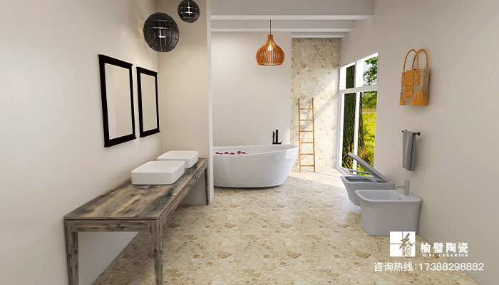 第一招措施:小瓷磚鋪貼關鍵詞:顏色統一避免雜亂。適用范圍:衛生間面積小但內容豐富,物品多。鋪貼技巧:一種顏色為主,小塊顏色為輔,衛浴瓷磚豐富的材質與和諧的搭配是以一種顏色為基礎,大面積鋪貼局部瓷磚裝飾可以讓小衛生間看起來統一和諧,避免雜亂擁擠的感覺。尤其是衛生間常用的小尺寸瓷磚,因為拼貼形式很多,一不小心就容易讓空間看起來更凌亂。因此,一種顏色應該是主色調,輔以小塊的顏色。如果怕單色太死板,可以在瓷磚材料和衛浴產品上下功夫,但要注意材料之間的和諧。